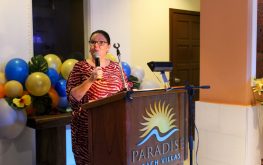 CEO of the Aruba Tourism Authority Ronella Tjin Asjoe – Croes delivered the next address and stated that the island of Aruba has greatly benefitted from its long-standing relationship with the timeshare industry and expressed her gratitude to each and every guest for his/her loyalty to the island and its people. Statistics showed that the satisfaction with Aruba among timeshare owners was higher than among transient visitors and she remarked she was humbled and astounded by at the profound love and knowledge of the island she found among Paradise Beach Villas owners.