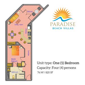 A one-bedroom suite accommodates up to four (4) persons and consists of: